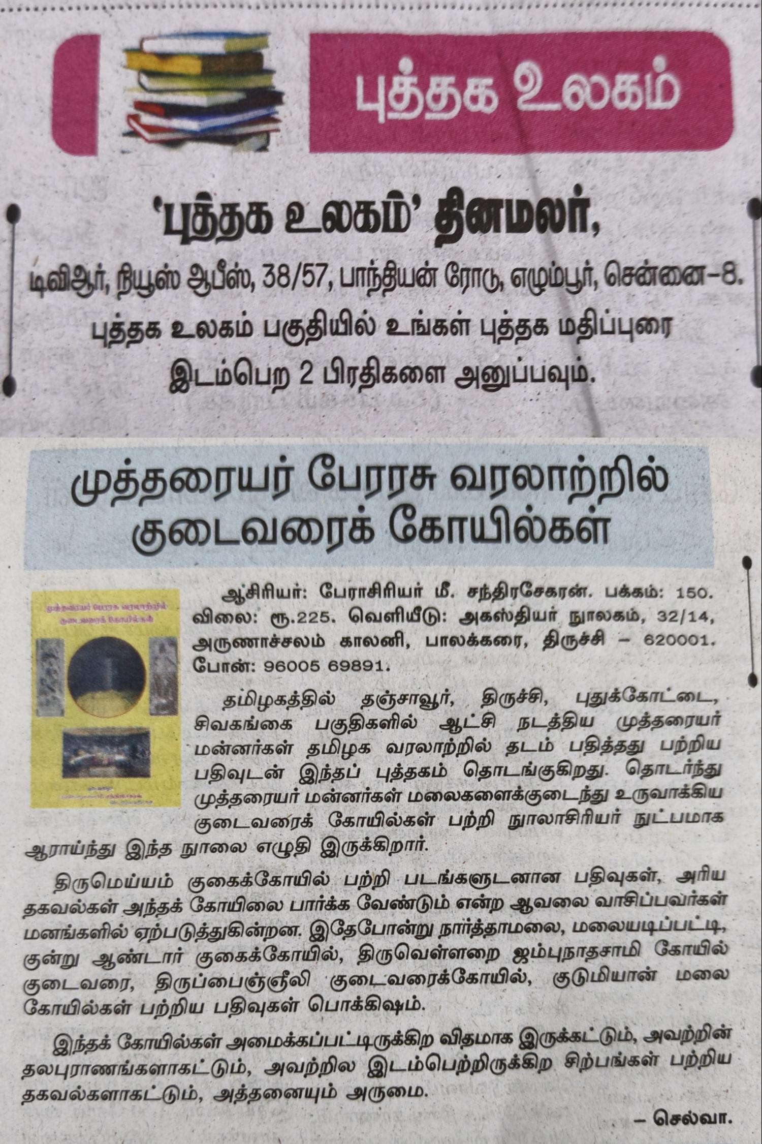 இன்றைய தினகரன் நாளிதழில் சாத்தன் பூதி எனும் முத்தரையர் பேரரசு அமைத்த குடைவரைக்கோயில் .....