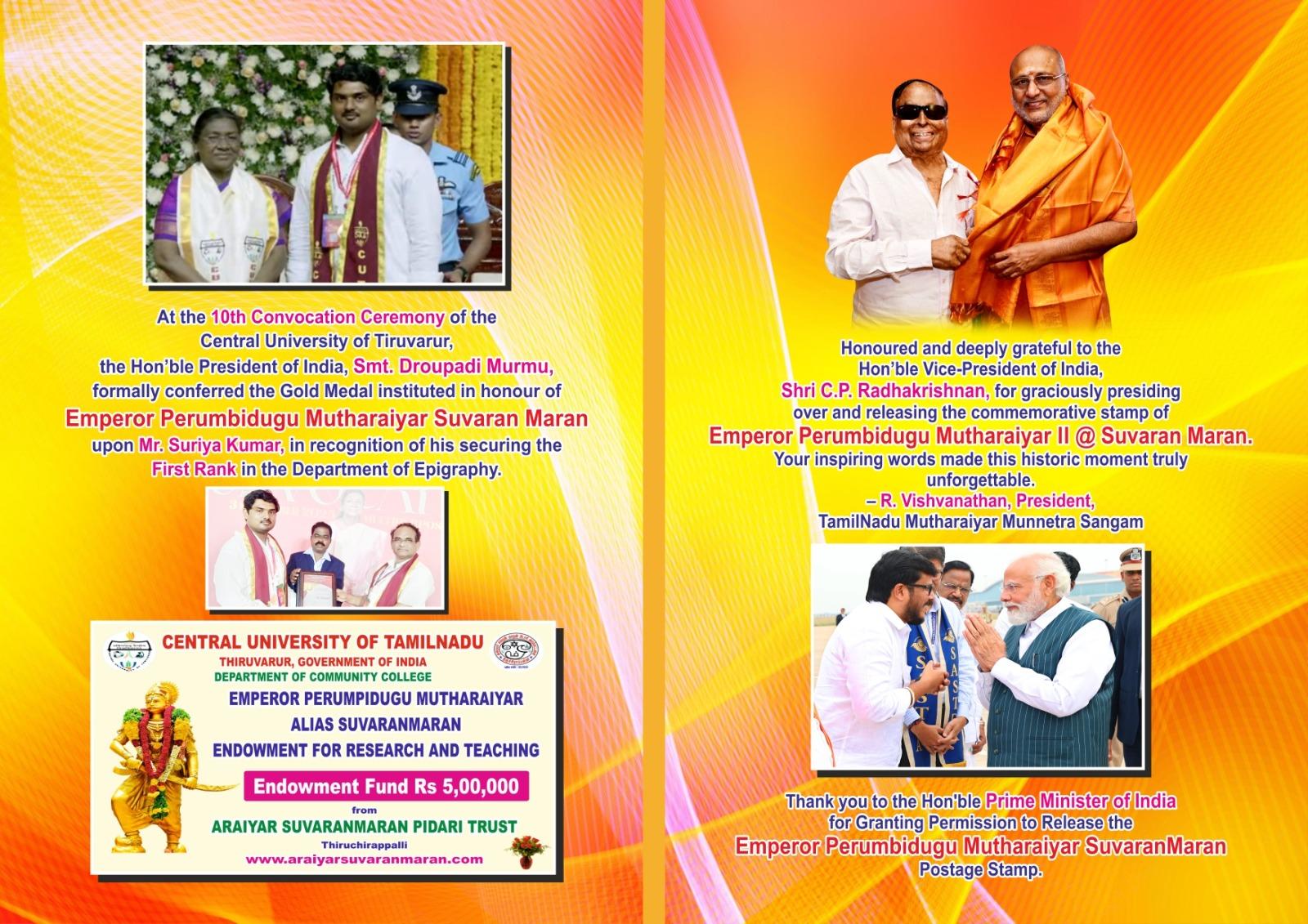 14-12-2025 அன்று டெல்லியில் துணை குடியரசுத்தலைவர் கோட்டையில் , கோட்டை கட்டி ஆண்ட பேரரசர் பெரும்பிடுகு முத்தரையர் சுவரன்மாறன் அவர்களின் அஞ்சல் தலை வெளியீட்டு விழா.....