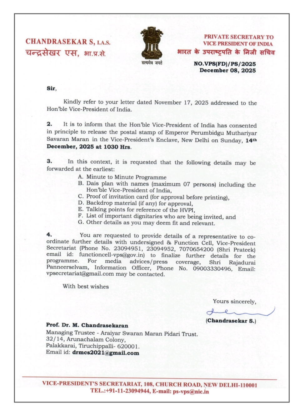 பேரரசர் அஞ்சல் தலை வெளியீட்டு விழா-2025